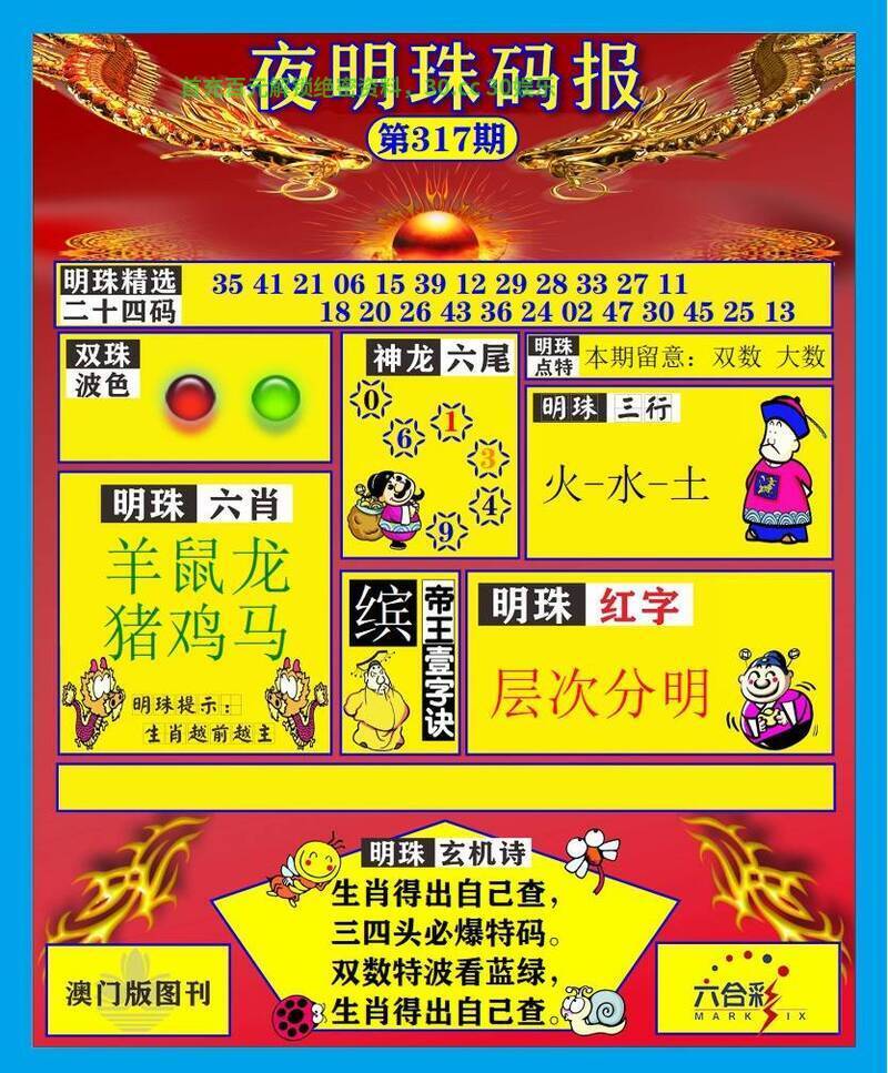 | 317期:玄机诗 生肖得出自己查,三四头必爆特码。双数特波看蓝绿,生肖得出自己查。 精选六肖:羊鼠龙猪鸡马 |
